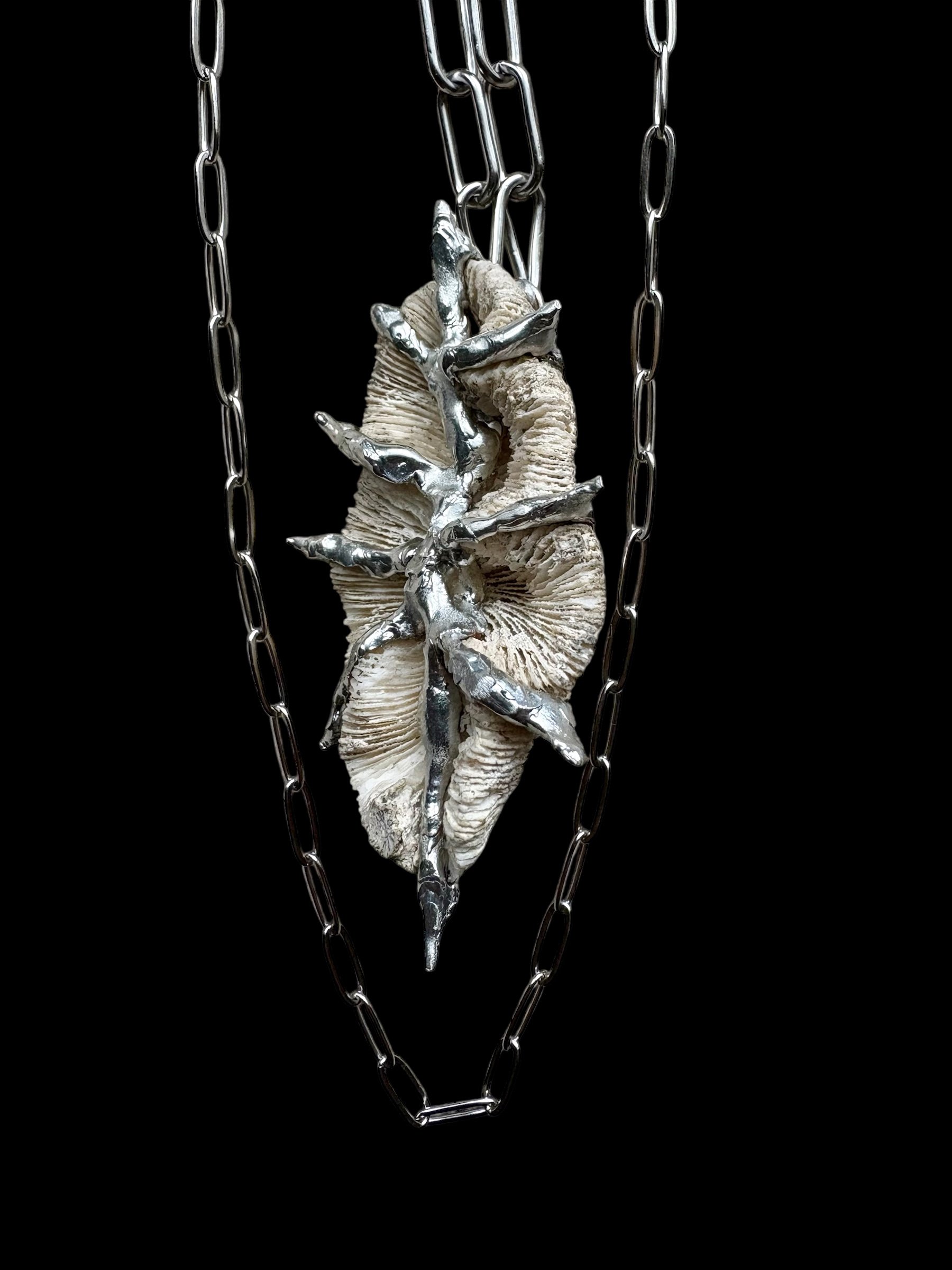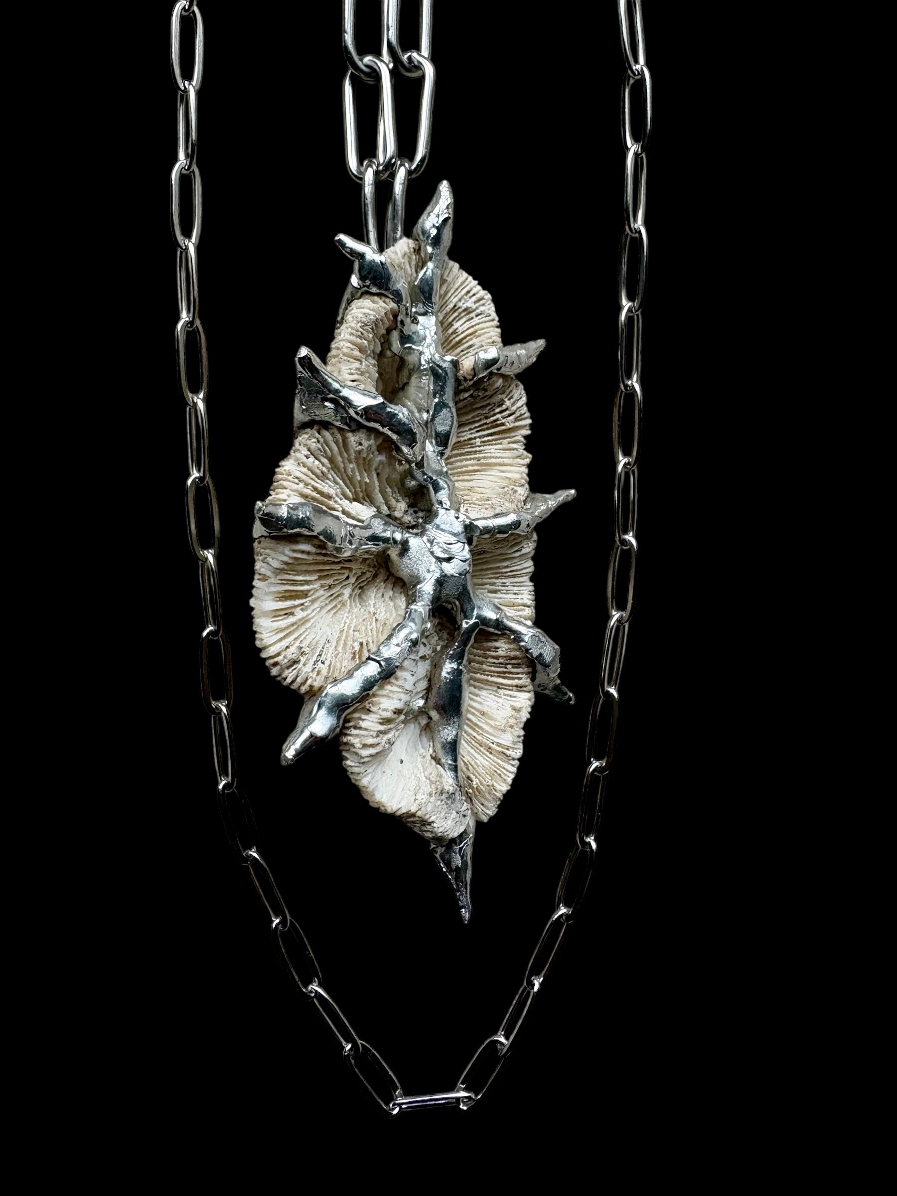 One-of-a-kind Coral necklace designed to hang long with the pendant close to the heart.
